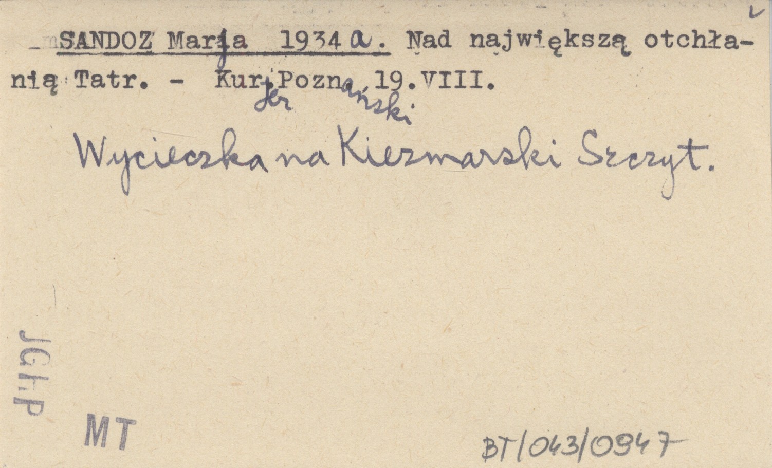 SANDOZ Marja 1934 a Nad największą otchłanią Tatr.