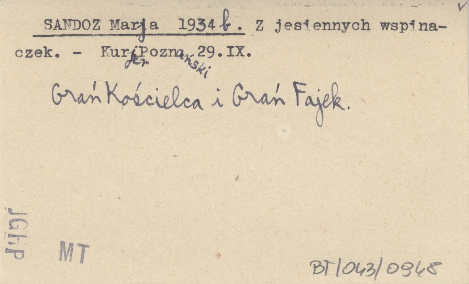 Kurjer Poznański, 29 IX. Grań Kościelca i Grań Fajek.