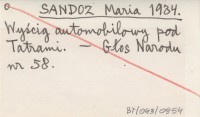 SANDOZ Maria 1934 Wyścig automobilowy pod Tatrami.