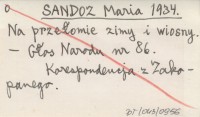 SANDOZ Maria 1934 Na przełomie zimy i wiosny.