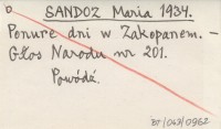 SANDOZ Maria 1934 Ponure dni w Zakopanem.