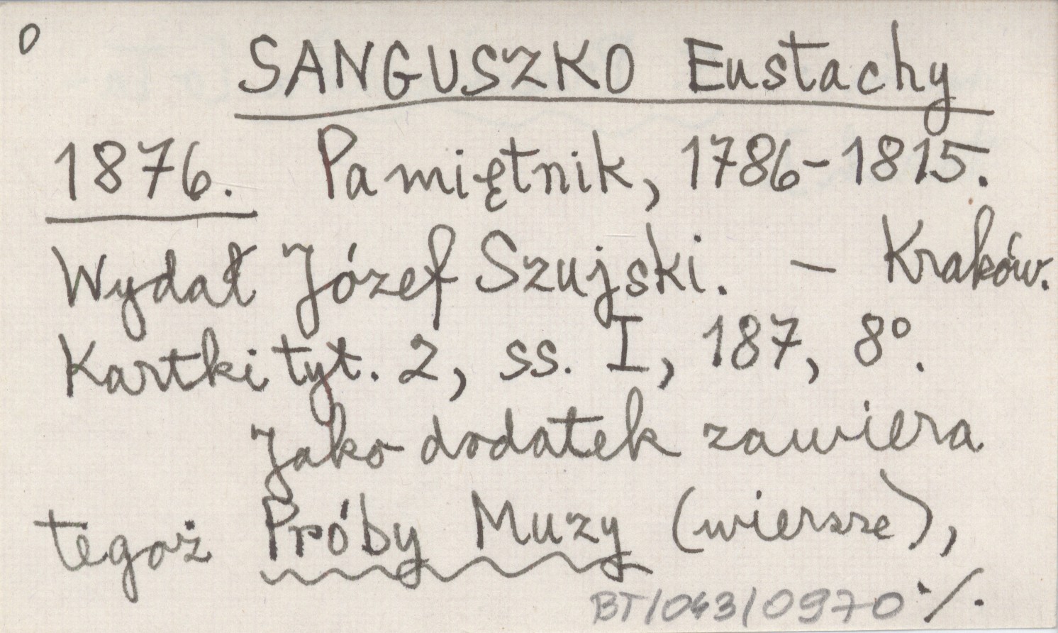 SANGUSZKO Eustachy 1876 Pamiętnik, 1786-1815. Wydał Józef Szujski.