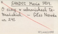 SANDOZ Maria 1934 O ciszę w schroniskach tatrzańskich.