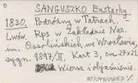 SANGUSZKO Eustachy 1830 Podróżny w Tatrach.