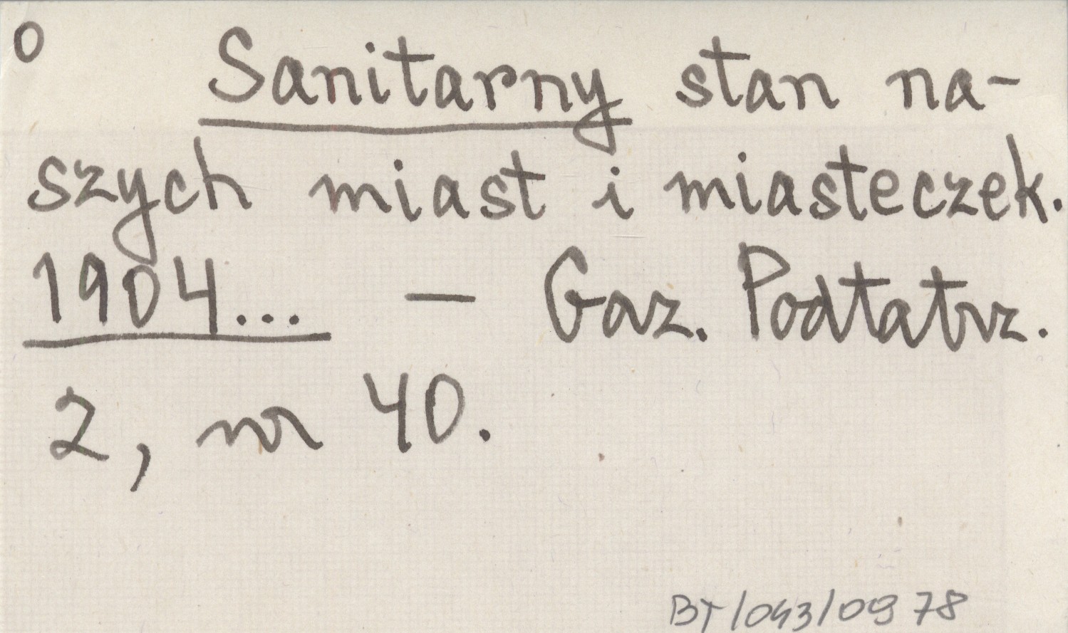Sanitarny stan naszych miast i miasteczek. 1904...