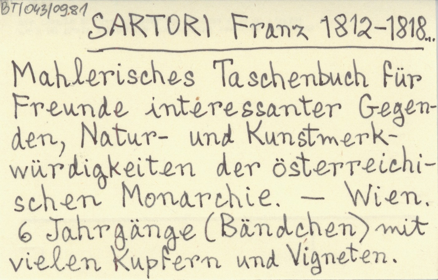 SARTORI Franz 1812-1818... Mahlerisches Taschenbuch für Freunde interessanter Gegenden, Natur- und Kunstmerkwürdigkeiten der österreichischen Monarchie.