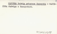 SAPIEHA Hedwig geborene Zamoyska SAPIEŻYNA Jadwiga z Zamoyskich