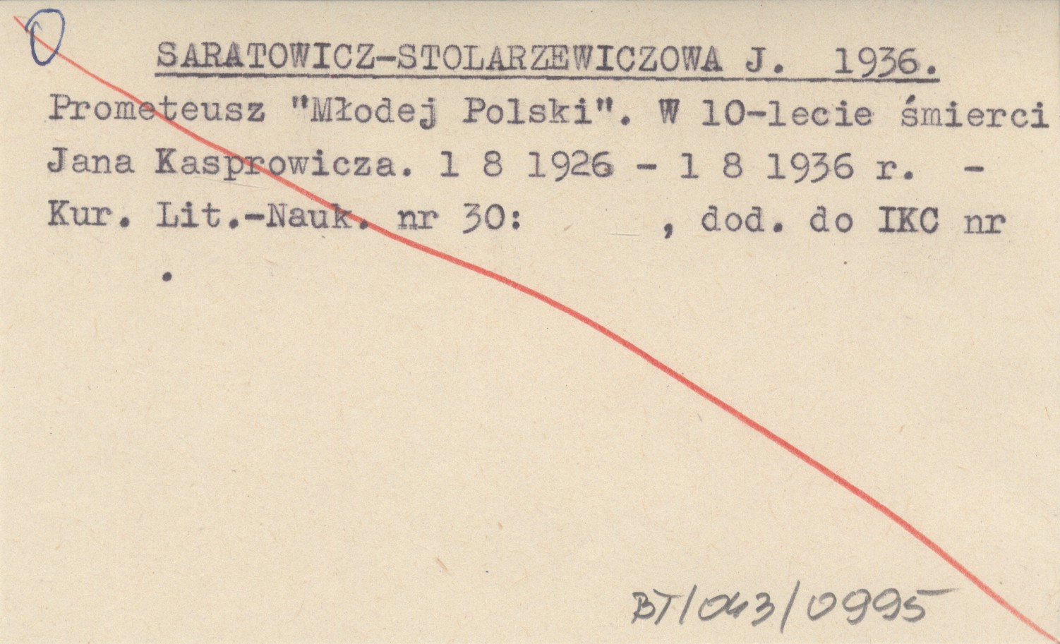 SARATOWICZ-STOLARZEWICZOWA J. 1936 Prometeusz "Młodej Polski". W 10-lecie śmierci Jana Kasprowicza. 1 8 1926 - 1 8 1936 r.