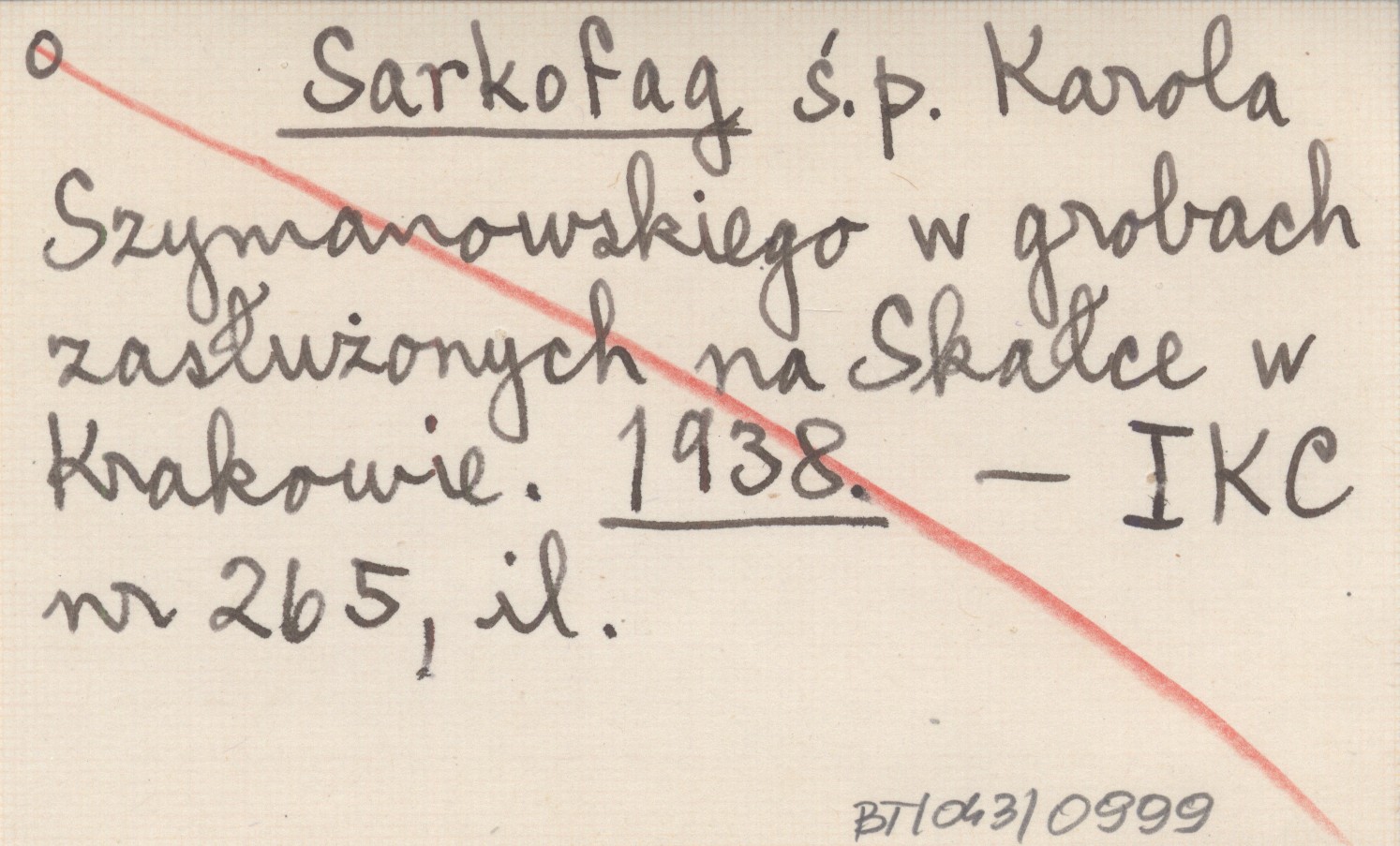 Sarkofag ś. p. Karola Szymanowskiego w grobach zasłużonych na Skałce w Krakowie. 1938