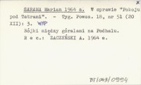 SARAMA Marian 1964 a W sprawie "Pokoju pod Tatrami".
