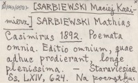 SARBIEWSKI Mathias Casimirus [SARBIEWSKI Maciej Kazimierz] 1892 Poemata omnia. Editio omnium, quae odhuc prodierant, longe plenissima.
