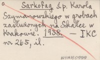 Sarkofag ś. p. Karola Szymanowskiego w grobach zasłużonych na Skałce w Krakowie. 1938