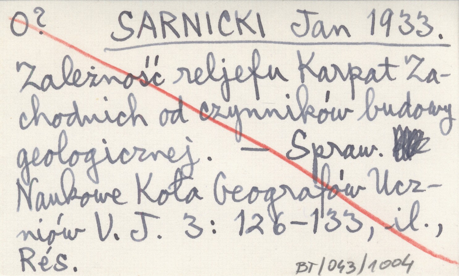 SARNICKI Jan 1933 Zależność reljefu Karpat Zachodnich od czynników budowy geologicznej.