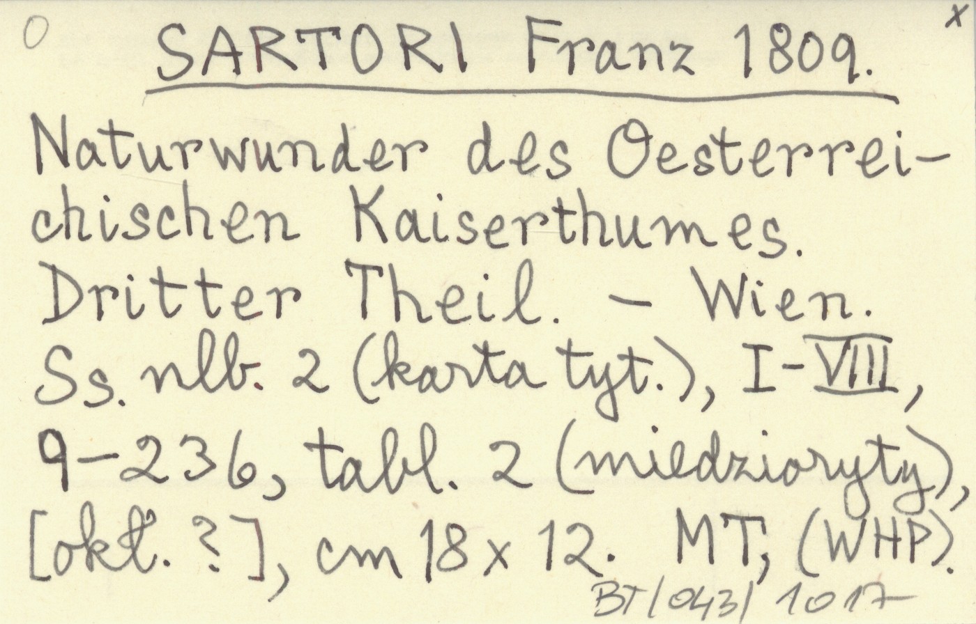 SARTORI Franz 1809 Naturwunder des Oesterreichischen Kaiserthumes. Dritter Theil.