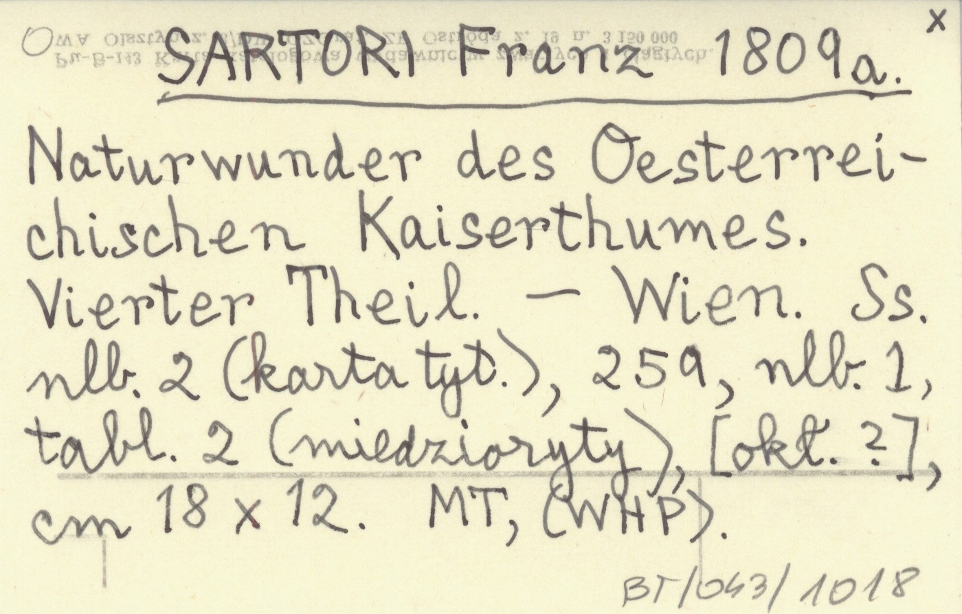 SARTORI Franz 1809 a Naturwunder des Oesterreichischen Kaiserthumes. Vierter Theil.