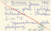BOGUCKI Janusz 1949 Picasso, górale i polityka kulturalna.
