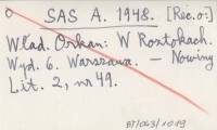 SAS A. 1948 Wład. Orkan: W Roztokach. Wyd. 6. Warszawa.