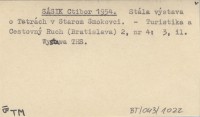 SÁSIK Ctibor 1954 a K stálej výstave v Starom Smokovci.