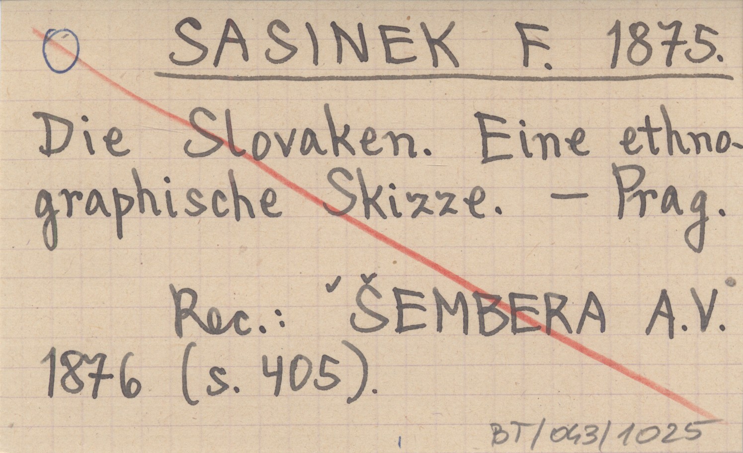 SASINEK F. 1875 Die Slovaken. Eine ethnographische Skizze.