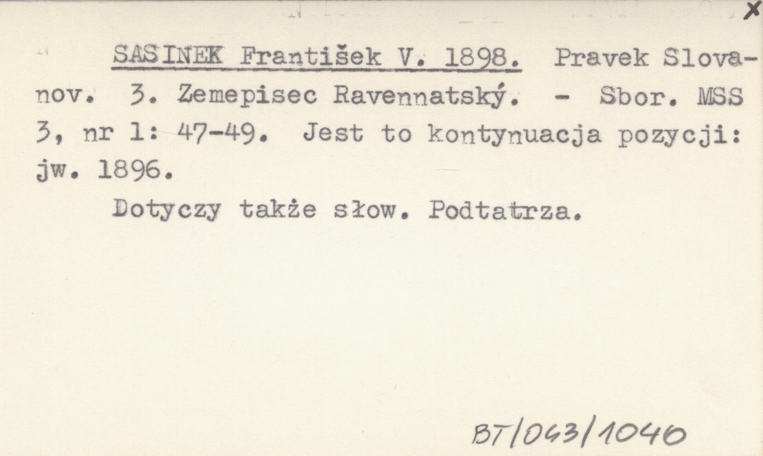 SASINEK František V. 1898 Pravek Slovanov. 3. Zemepisec Ravennatský.