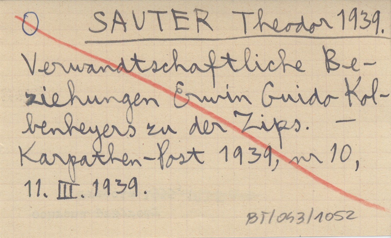 SAUTER Theodor 1939 Verwandtschaftliche Beziehungen Erwin Guido Kolbenheyers zu der Zips.