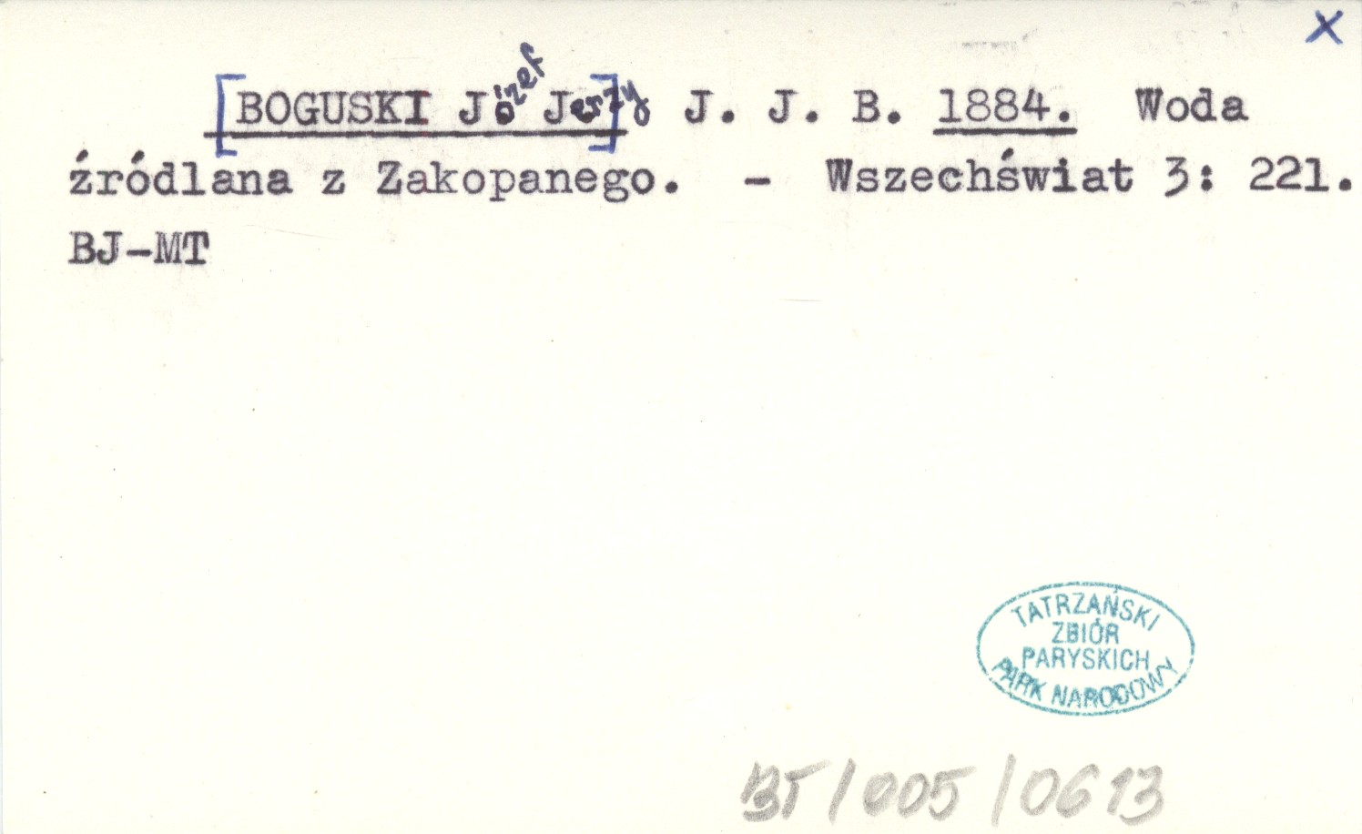 J. J. B. [BOGUSKI Józef Jerzy] 1884 Woda źródlana z Zakopanego.