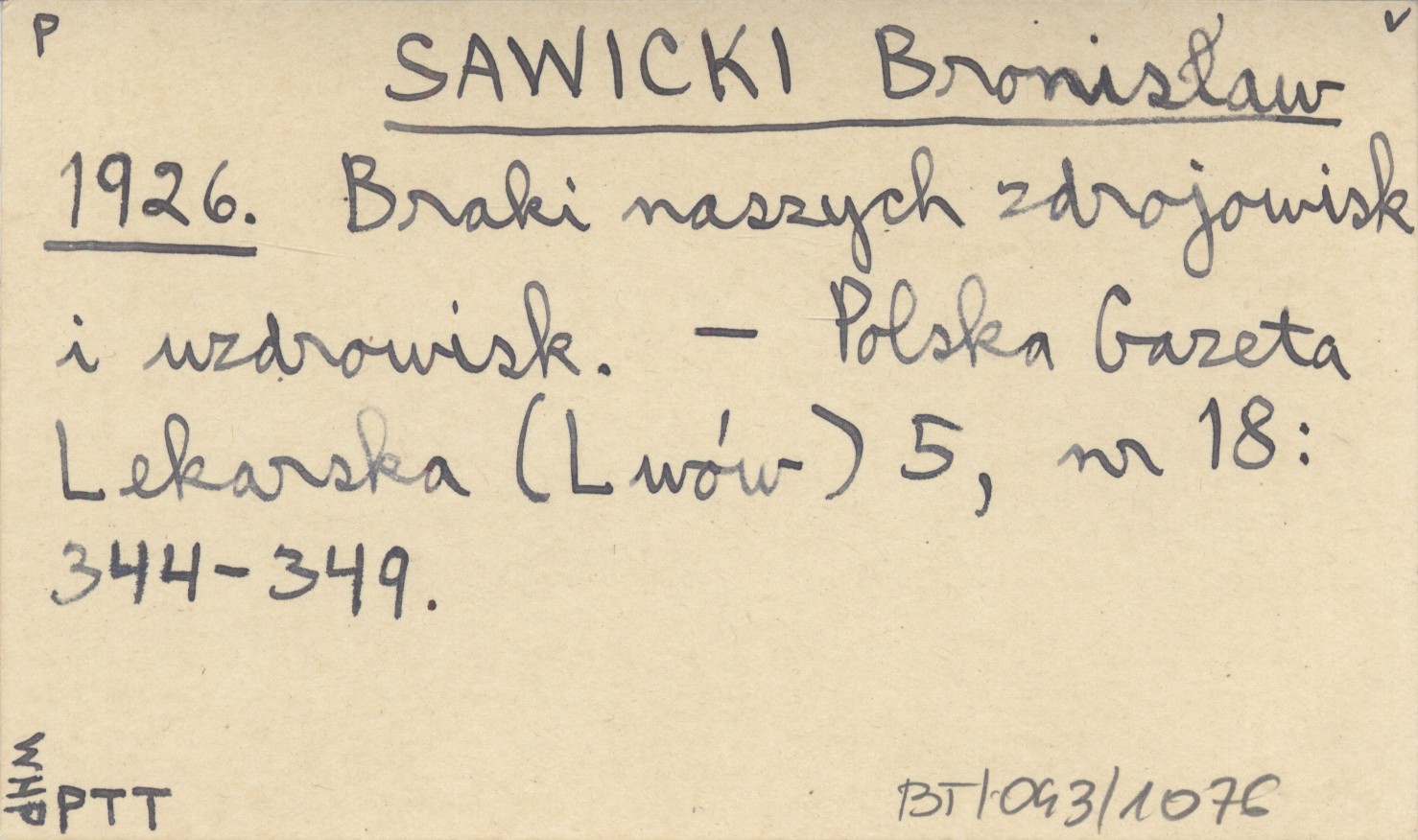 SAWICKI Bronisław 1926 Braki naszych zdrojowisk i uzdrowisk.