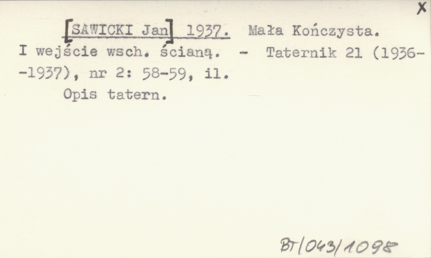 [SAWICKI Jan] 1937 Mała Kończysta. I wejście wsch. ścianą.