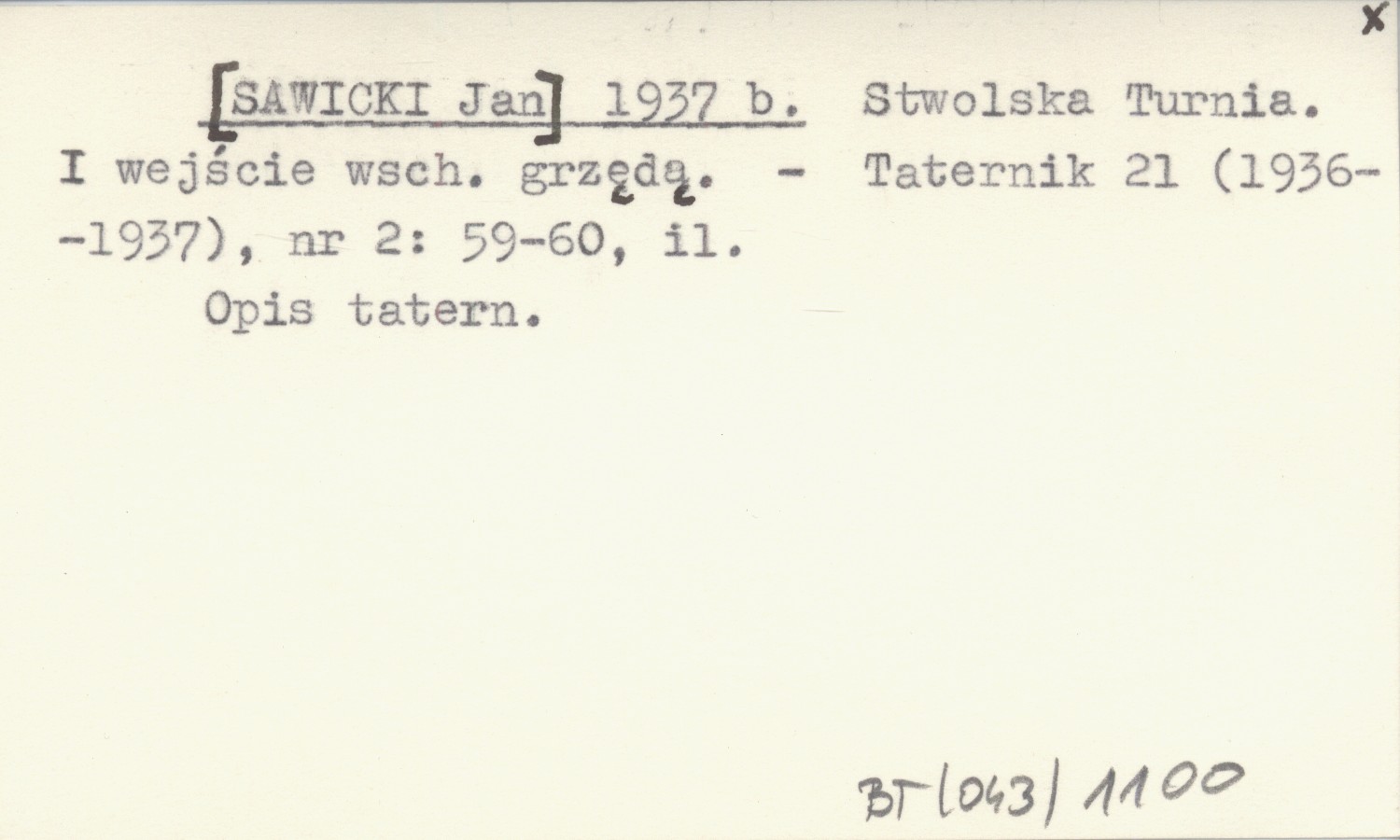 [SAWICKI Jan] 1937 b Stwolska Turnia. I wejście wsch. grzędą.