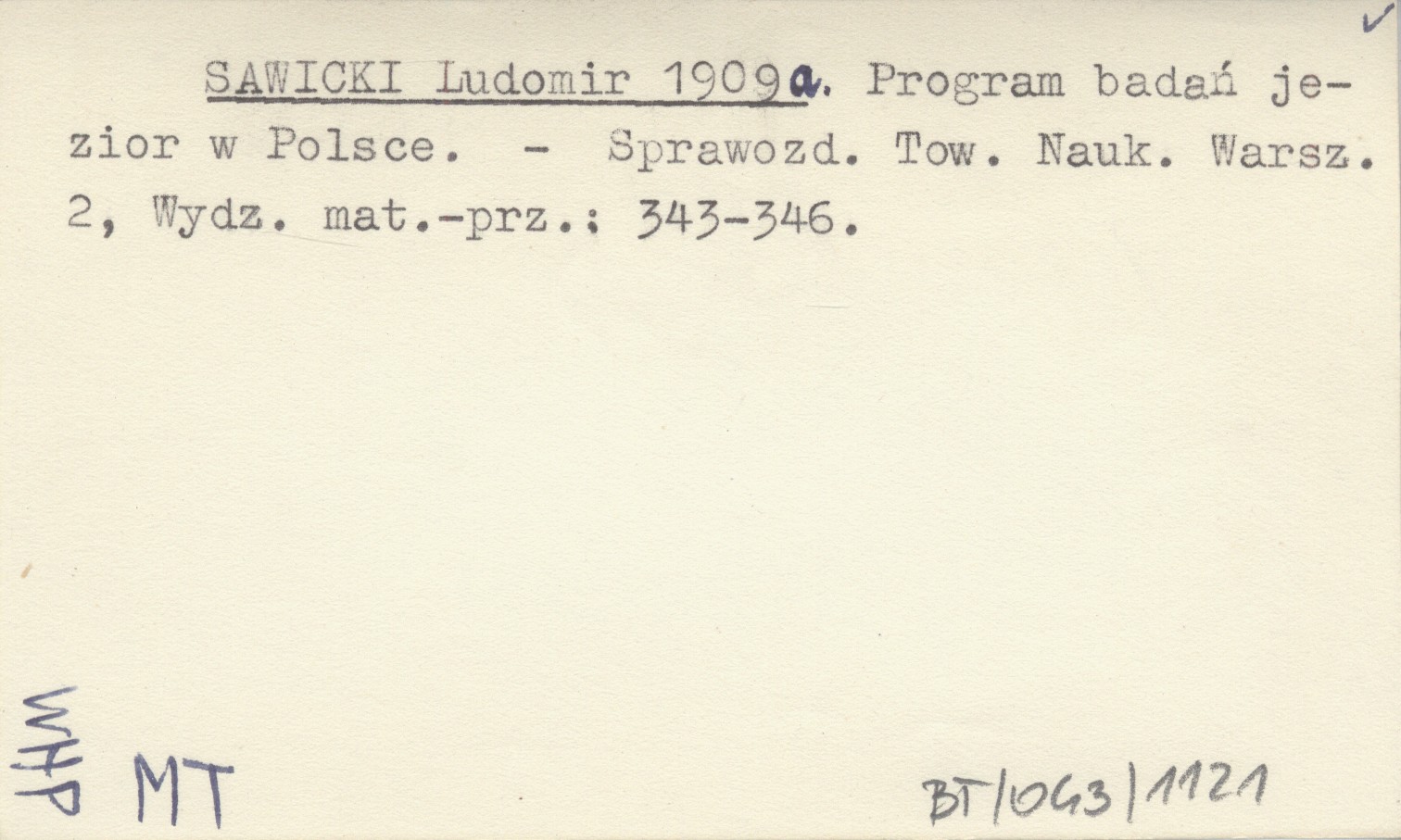 SAWICKI Ludomir 1909 a Program badań jezior w Polsce.