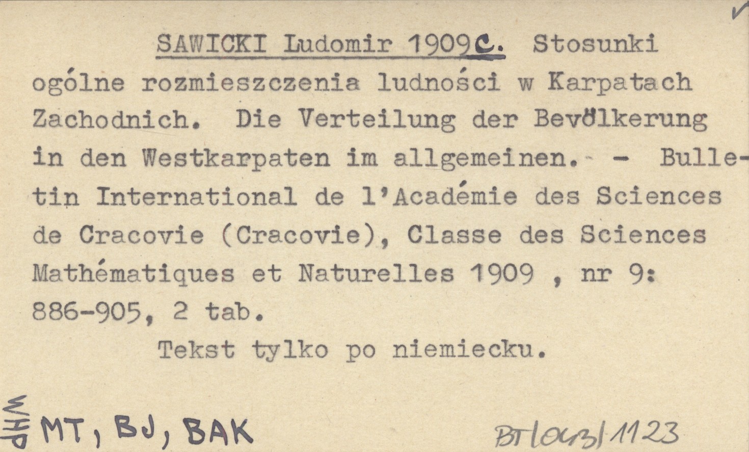 SAWICKI Ludomir 1909 c Stosunki ogólne rozmieszczenia ludności w Karpatach Zachodnich. Die Verteilung der Bevölkerung in den Westkarpaten im allgemeinen.