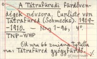 A Tátrafüredi fürdövendégek névsora. Curliste von Tátrafüred (Schmecks). 1909-1910