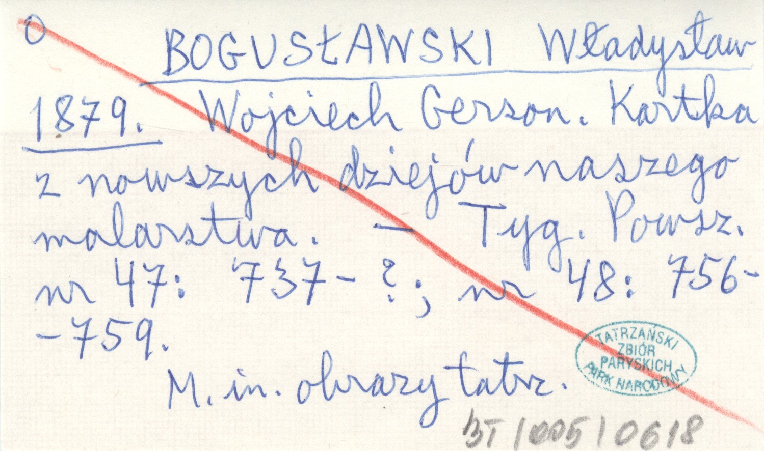 BOGUSŁAWSKI Władysław 1879 Wojciech Gerson. Kartka z nowszych dziejów naszego malarstwa.