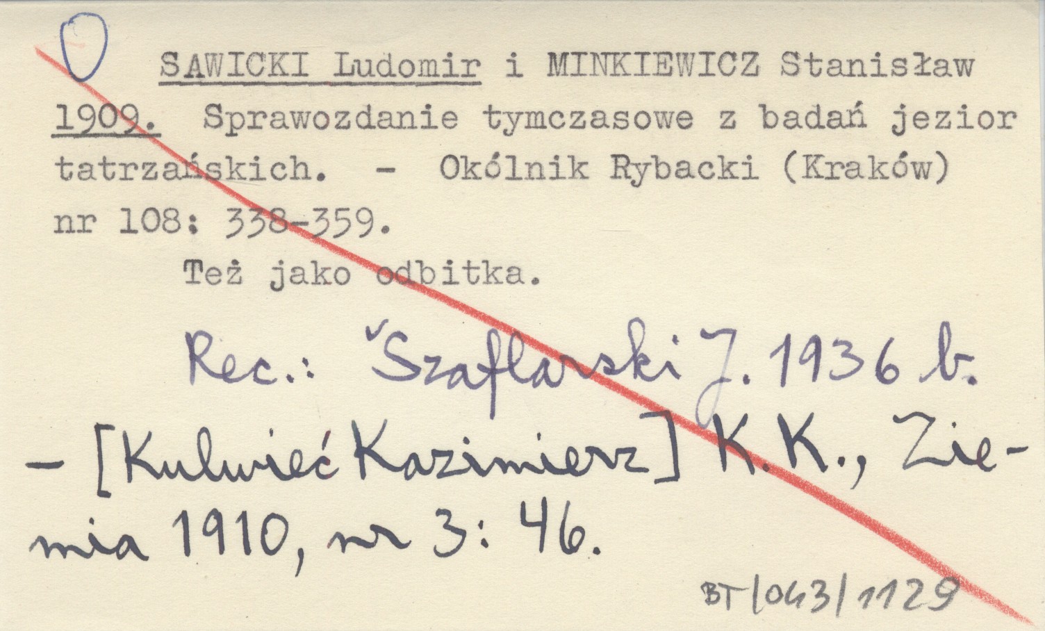 Okólnik Rybacki (Kraków) , Nr 108: 338-359. Też jako odbitka. REC: SZAFLARSKI J. 1936 b ; [KULWIEĆ Kazimierz] K. K., Ziemia 1910, nr 3: 46 ;