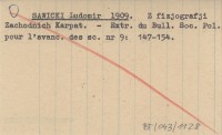 SAWICKI Ludomir 1909 Z fizjografji Zachodnich Karpat.