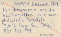 SAWICKI Ludomir 1909 Der Nordapennin und die Westkarpaten, eine morphologische Parallele.