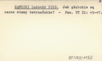 SAWICKI Ludomir 1910 Jak głębokie są nasze stawy tatrzańskie?