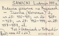 SAWICKI Ludomir 1911 a Badania jeziorne na Kujawach.