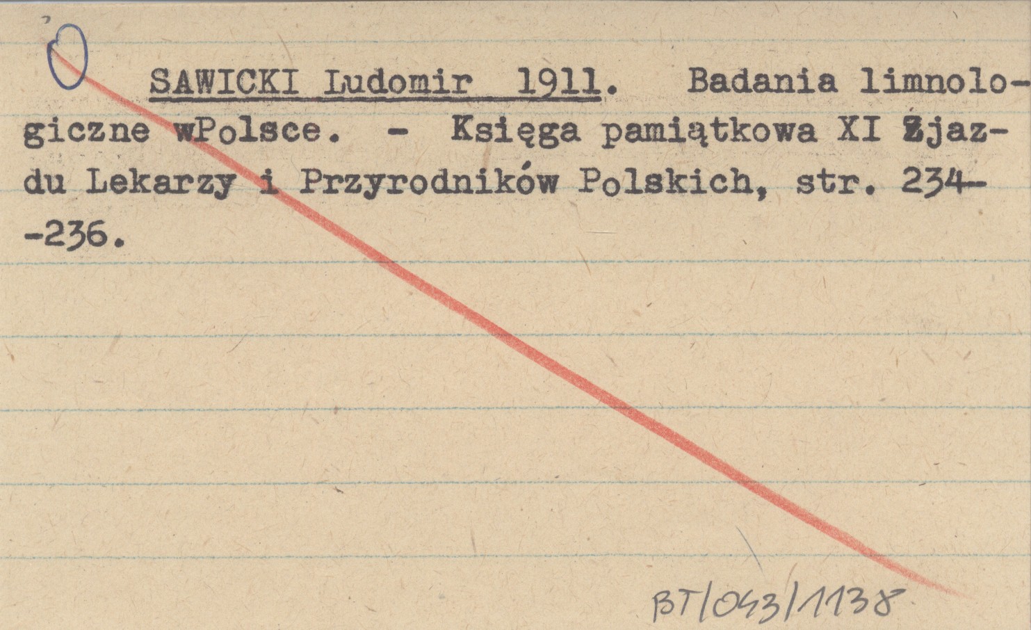 SAWICKI Ludomir 1911 Badania limnologiczne wPolsce.