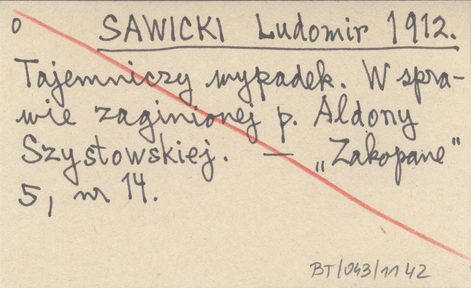 SAWICKI Ludomir 1912 Tajemniczy wypadek. W sprawie zaginionej p. Aldony Szystowskiej.