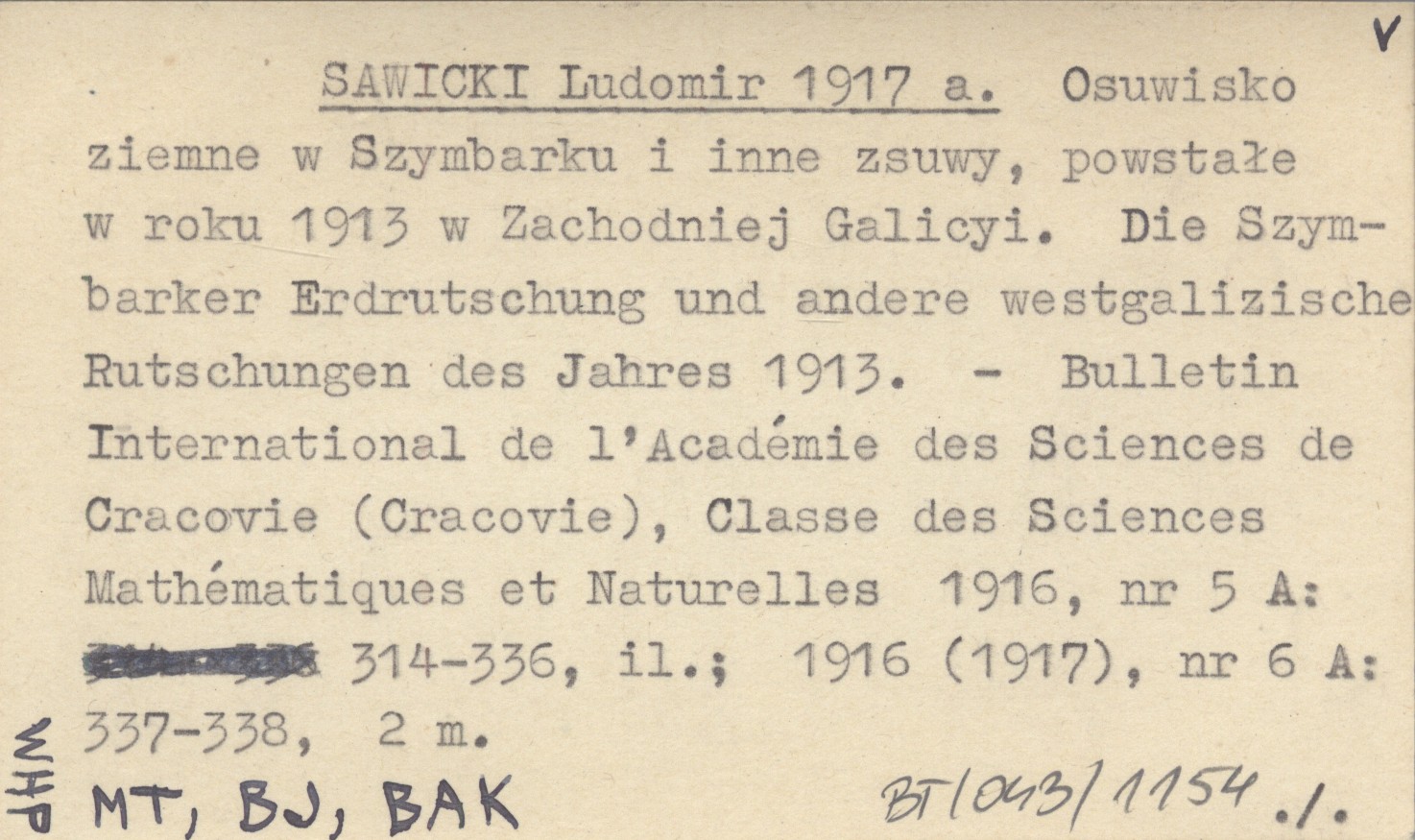 SAWICKI Ludomir 1917 a Osuwisko ziemne w Szymbarku i inne zsuwy, powstałe w roku 1913 w Zachodniej Galicyi. Die Szymbarker Erdrutschung und andere westgalizische Rutschungen des Jahres 1913.