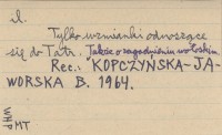 Materjały Antropologiczno-Archeologiczne i Etnograficzne (Kraków) , 14, dz. III: 137-183, il. Tylko wzmianki odnoszące się do Tatr. Także o zagadnieniu wołoskim. REC: KOPCZYŃSKA-JAWORSKA B. 1964