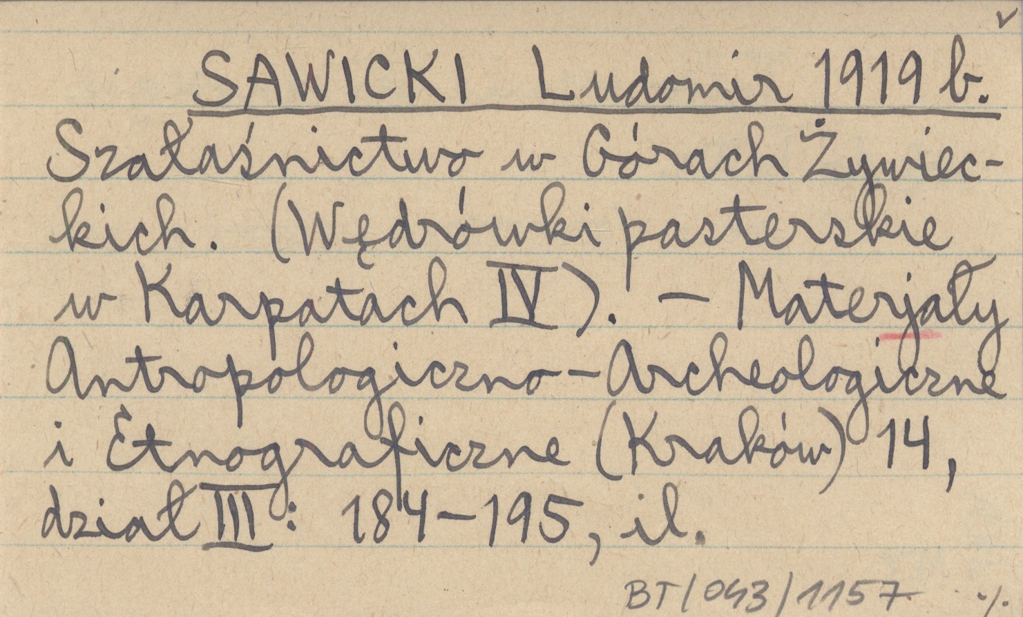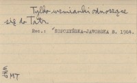 Materjały Antropologiczno-Archeologiczne i Etnograficzne (Kraków) , 14, dz. III: 184-195, il. Tylko wzmianki odnoszące się do Tatr. REC: KOPCZYŃSKA-JAWORSKA B. 1964