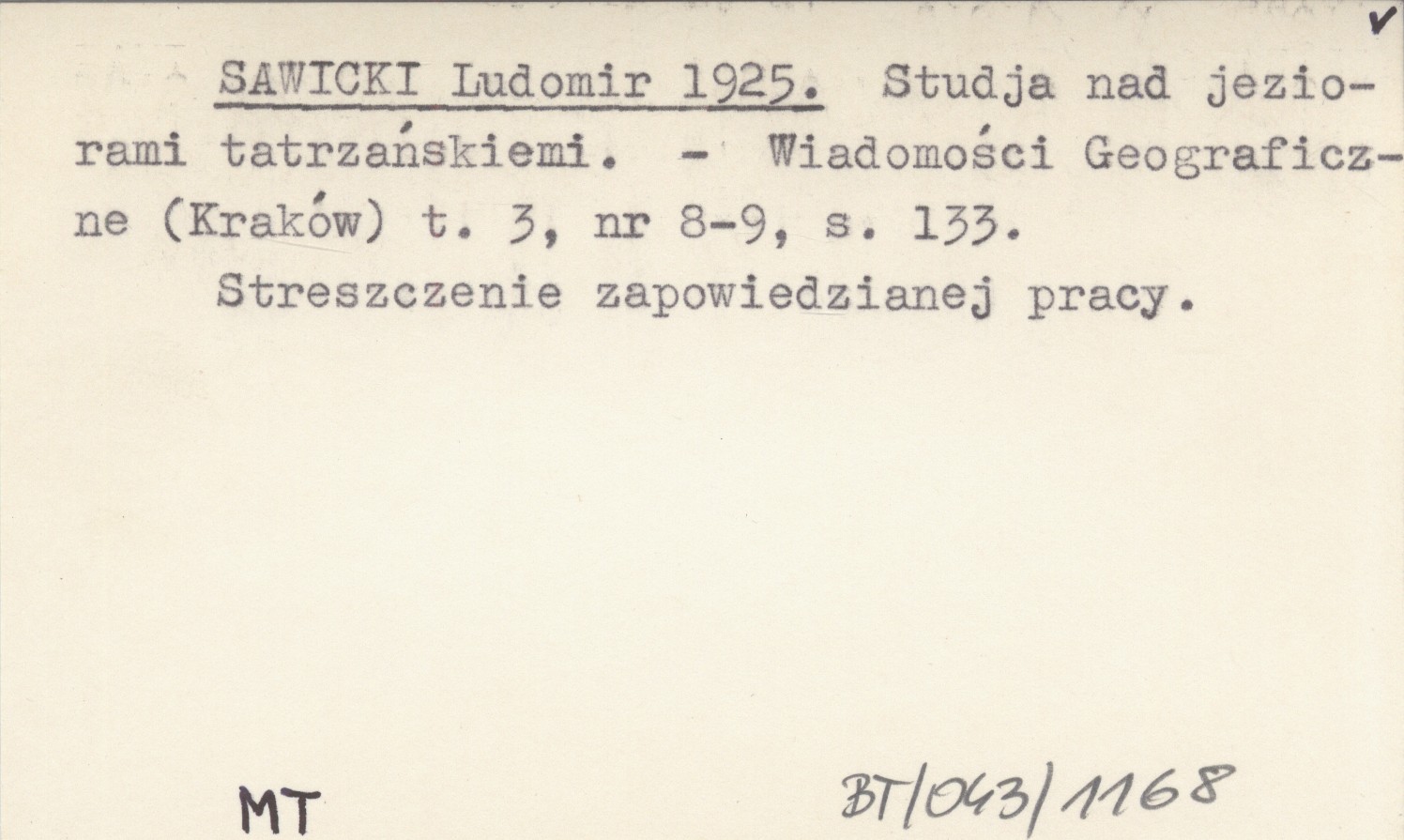 Wiadomości Geograficzne (Kraków) , T. 3, nr 8-9: 133. Streszczenie zapowiedzianej pracy.
