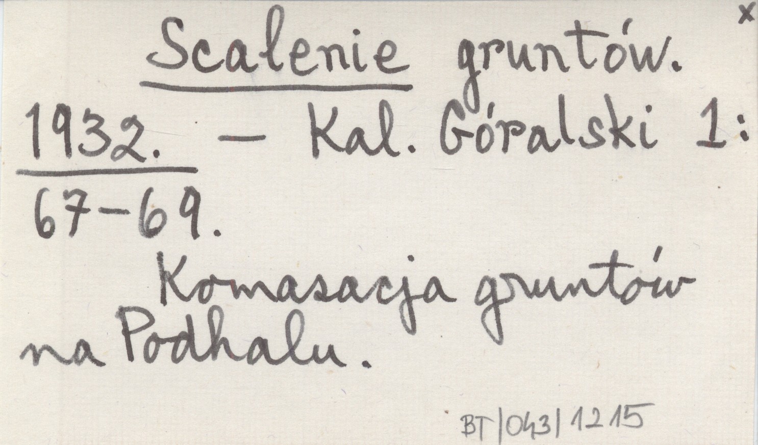 Kalendarz Góralski, 1: 67-69. Komasacja gruntów na Podhalu.