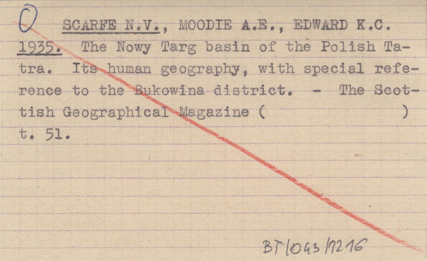 SCARFE N.V. MOODIE, A.E. ; EDWARD, K.C. ; 1935 The Nowy Targ basin of the Polish Tatra. Its human geography, with special reference to the Bukowina district.