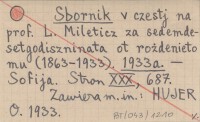 Sbornik v czestj na prof. L. Mileticz za sedemdesetgodiszninata ot rożdenieto mu (1863-1933). 1933 a