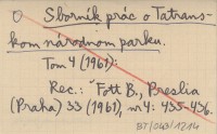 "Sborník Prác o Tatr. Nár. Parku". 1959
