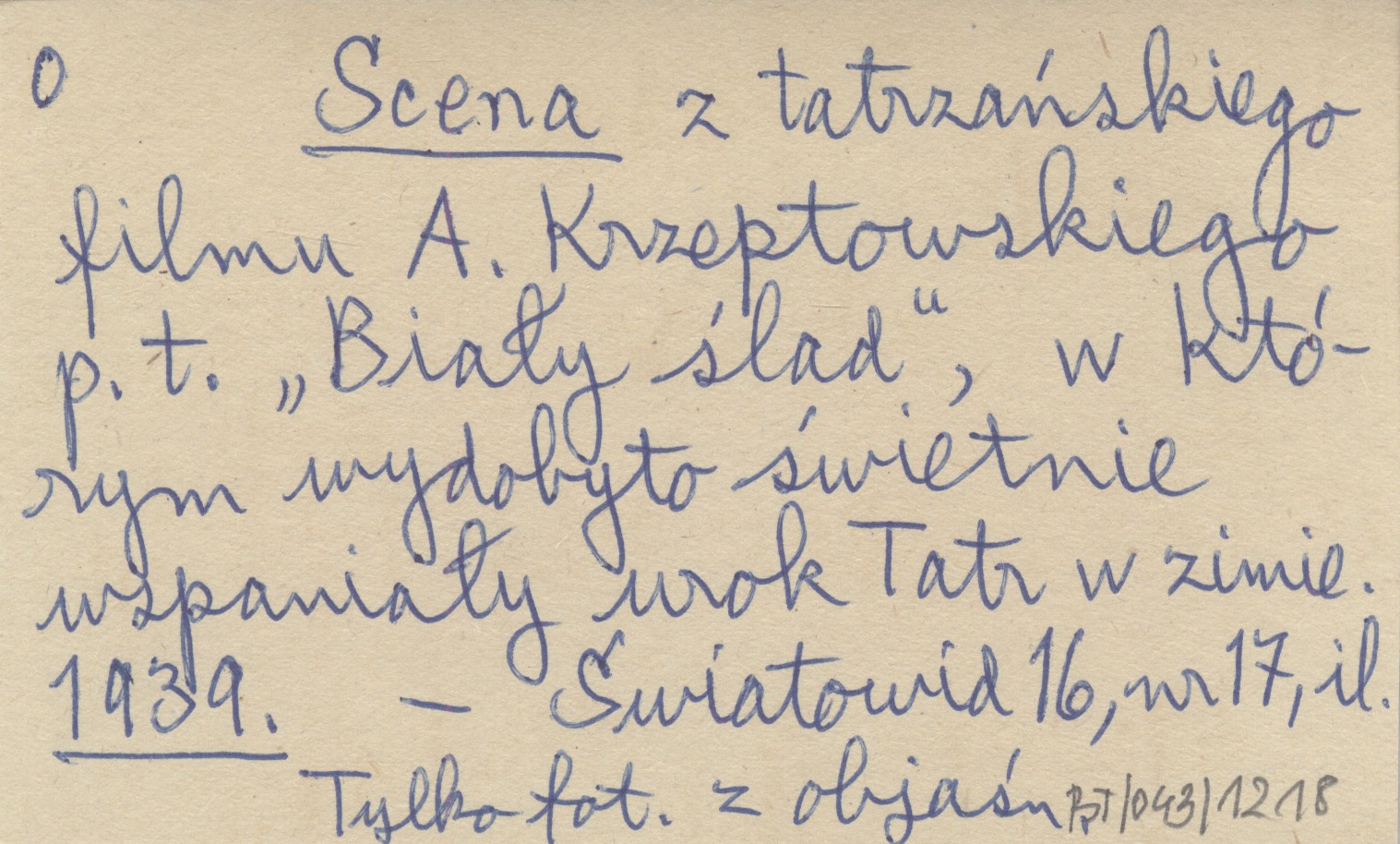 Scena z tatrzańskiego filmu A. Krzeptowskiego p. t. "Biały ślad", w którym wydobyto świetnie wspaniały urok Tatr w zimie. 1939