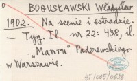 BOGUSŁAWSKI Władysław 1902 Na scenie i estradzie.